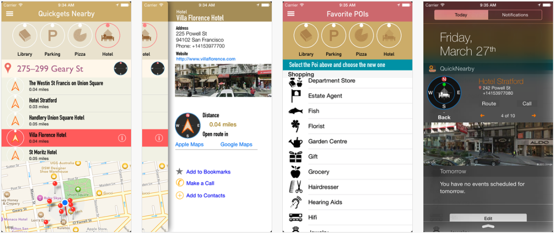 Quickgets Nearby for iOS 8 & Apple Watch. The first nearby places