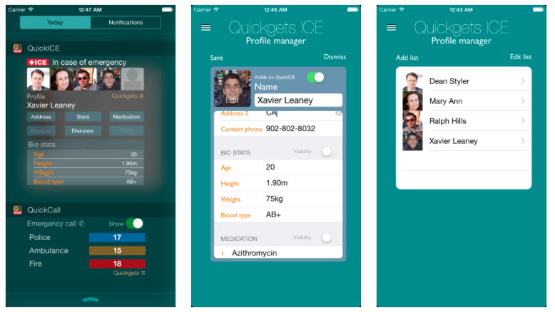 In Case of Emergency & emergency calls widgets and app for your Today Screen.